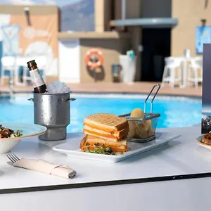 El hotel tiene un área de piscina.
